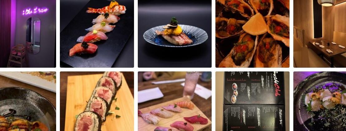 Rainbow RollCalifornia roll with assorted sashimi (tuna, salmon, yellowtail, and more) on top.$14.95